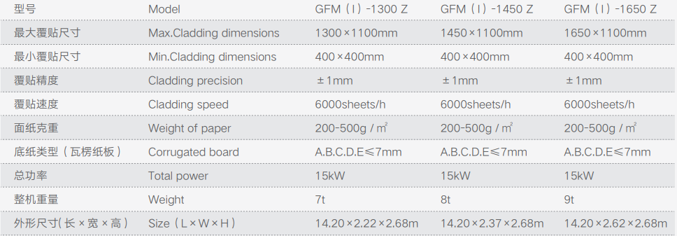 GFM(I)-1300/1450/1650 Z 全自動(dòng)裱紙機(jī)(鋼件型)性能特點(diǎn):