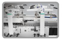 Intelligent electronic servo drive control electronic anti-hook system, can adjust the movement of the folding hook to adapt to the length of the fold, while the hook to complete the backward folding, to achieve the lock bottom, front hook, back and other special folding function , Meet the requirements of various special-shaped boxes; Three sets of wall panels, the whole and can achieve multiple demolition combinations; function changeable, advanced design and easy operation.